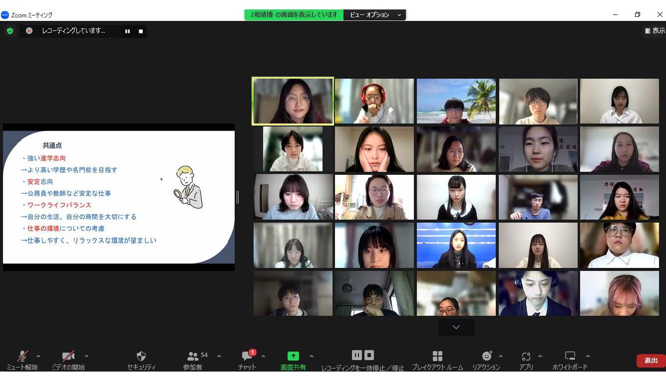 讨论过程中,学生们积极敞开心扉,结合自身实际情况,各抒己见。通过交流,双方学生们对各自的职业选择、当下流行趋势及消费方式等方面有了更深刻的思考和认识。我校学生们纷纷表示,本次对话会不仅提高了日语口语,开拓了视野,更加深了对日本文化和社会的理解。希望以此次活动作为新起点,今后双方之间能有更多交流机会,通过经常性的互动增进两国的交流和理解。