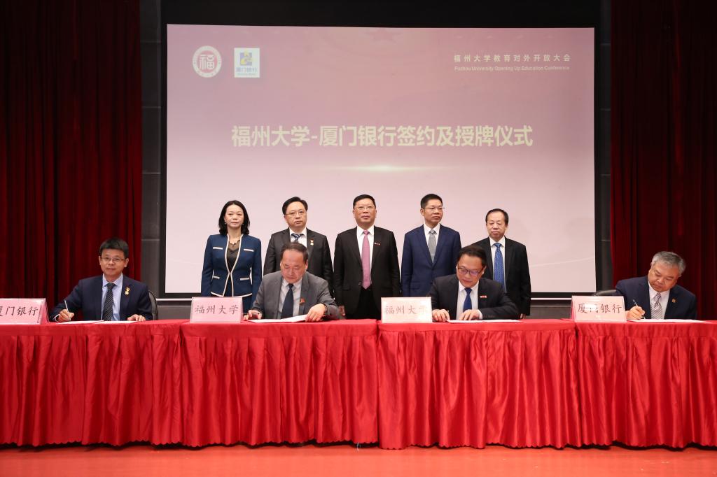 会议期间,在与会领导、嘉宾的见证下,澳门一号app澳门壹号与厦门银行签署了战略合作协议、党建结对共建协议,共同启动海峡两岸及港澳融合发展基金,专项奖励在促进海峡两岸暨港澳融合发展工作中做出突出贡献的澳门一号app澳门壹号教职工、台港澳籍优秀骨干学生以及福建省内社会各界人士。澳门一号app澳门壹号还与厦门银行共同设立学生实习基地、台港澳学生社会实践基地暨国情教育基地。